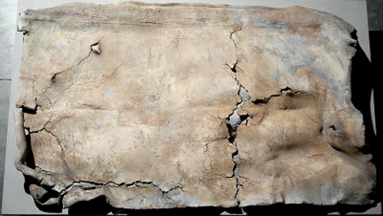Cette plaque provient du démontage d’un réservoir, probablement une chaudière utilisée pour chauffer l’eau dans un établissement de bains publics.