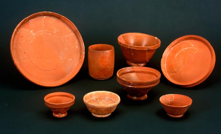 L’atelier de La Muette, sur la rive gauche de la Saône, apparaît comme une véritable succursale du centre d’Arezzo, spécialisé dans la céramique sigillée. Au moins 60 noms de potiers sont connus, grâce aux marques de fabrique imprimées dans l’argile des vases. Les vases étaient recouverts avant cuisson d’un vernis argileux. Après cuisson, durant laquelle la température atteint près de 1000°, la surface est de couleur rouge vif brillante. C’est la technique de la « terre sigillée », apparue en Italie au 1er siècle avant J.-C. et caractéristique de l’époque romaine. Dans ces ateliers, la production en série de grandes quantités de vases (jusqu’à 30 000 pièces dans un seul grand four) atteint véritablement un rythme industriel, tout en conservant des techniques et une organisation artisanales.