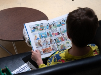 Installez-vous confortablement dans notre coin lecture et profitez d’une belle sélection d’ouvrages pour petits et grands !